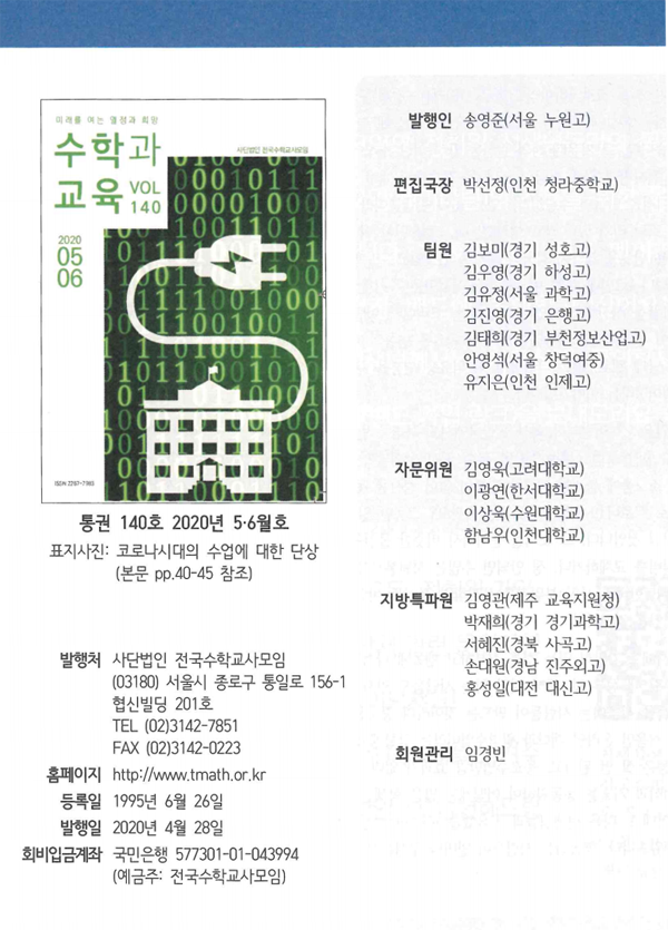 ¼öÇлý°¢(MATHOUGHT)Àº (»ç)Àü±¹¼öÇб³»ç¸ðÀÓ Àú³Î, ¡º¼öÇаú ±³À°¡» ȸÁö¿¡ 2014³â 7¤ý8¿ùÈ£ºÎÅÍ ¡ºÀÌÀåÈÆÀÇ ¼öÇнÇÇè½Ç¡»À» ¿¬ÀçÇϰí ÀÖ½À´Ï´Ù. ´ÙÀ½Àº 2020³â 5¤ý6¿ùÈ£¿¡ ¼Ò°³ÇÑ ¿øÁÖÀ² õ¸¸ÀÚ¸®¿¡¼ ãÀº Ưº°ÇÑ »ýÀϵé ÀÔ´Ï´Ù.